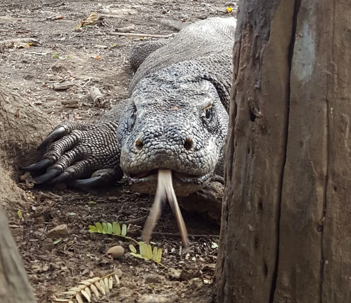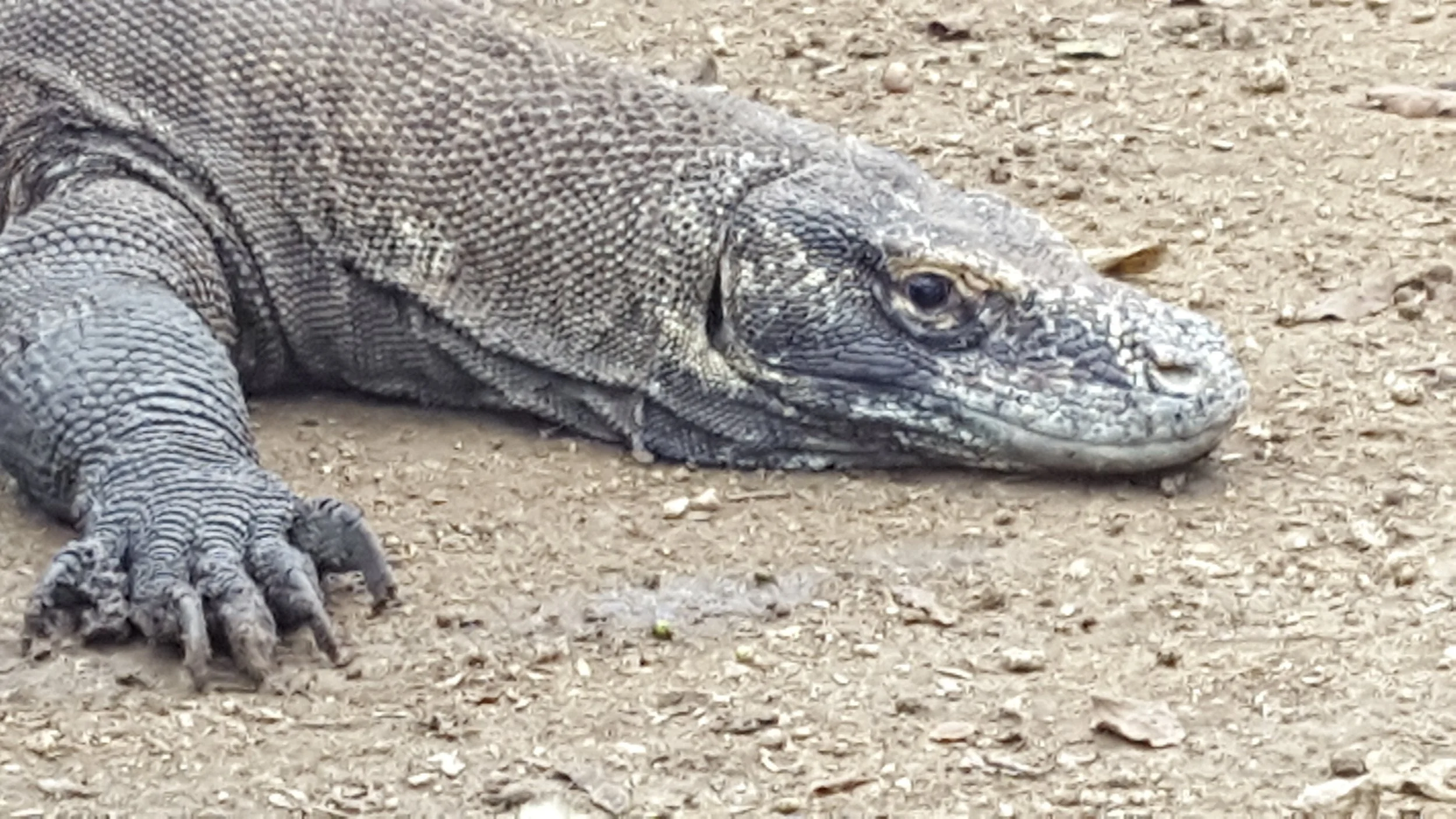 A Komodo dragon, close enough to see every detail—and every reason to keep your distance.